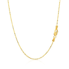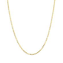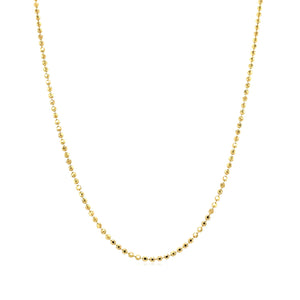 This diamond cut bead chain comes in 14k yellow gold and has a width of 1.10 millimeters.