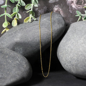 This diamond cut cable link chain comes in 14k yellow gold and has a width of 0.87 millimeters.