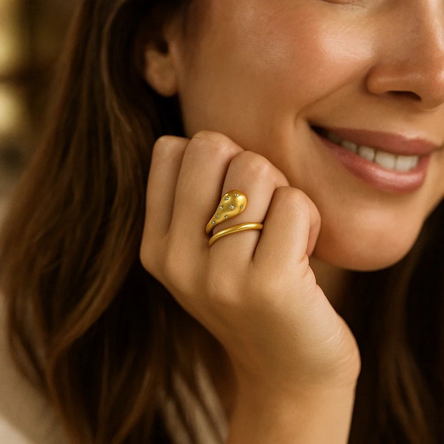 Elevate your style with this 14K yellow gold diamond-cut ring. Featuring a sleek 8.4 mm width, this stackable piece adds a touch of brilliance to any look. Perfect for wearing alone or pairing with other rings for a trendy, layered effect. A timeless addition to your collection.