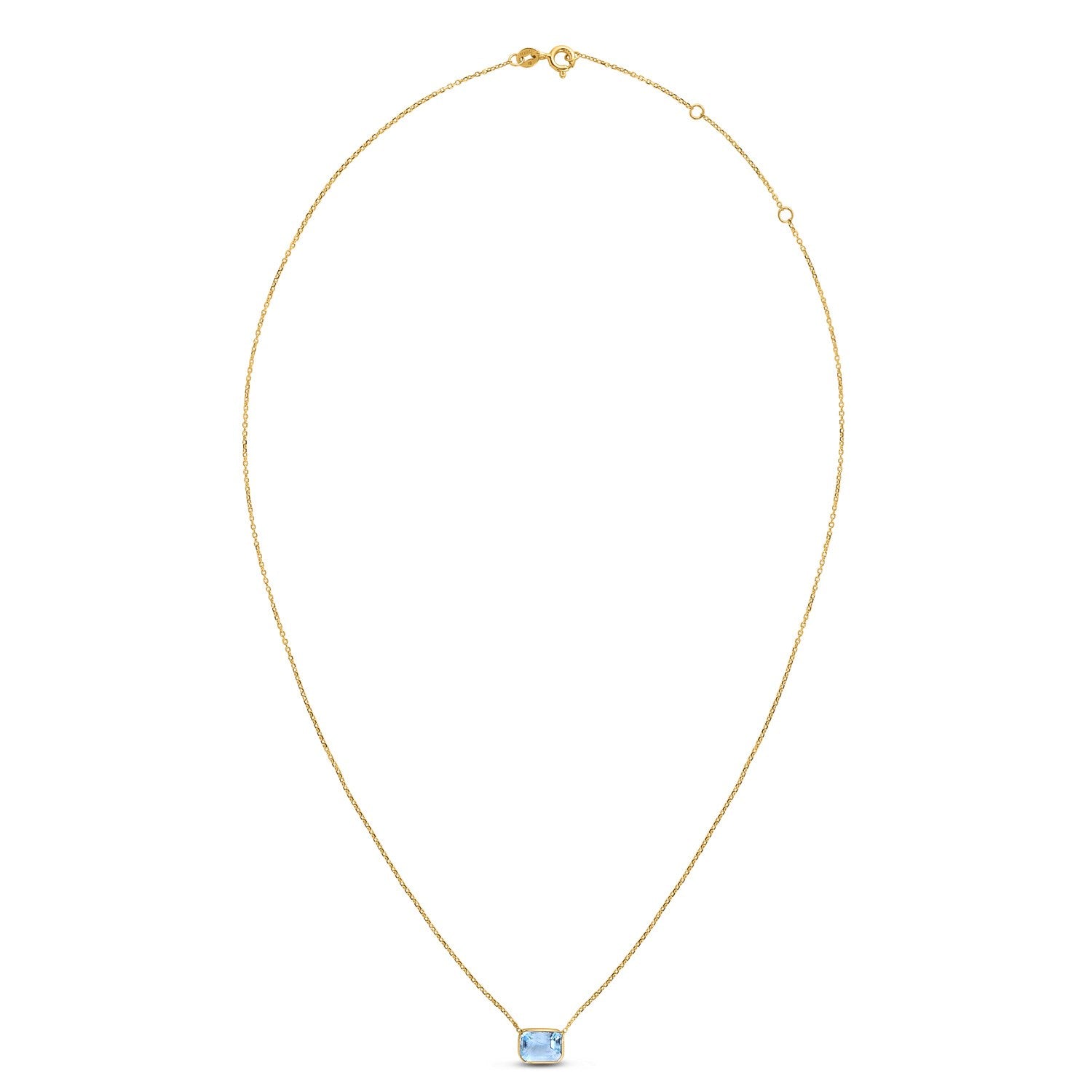 Elevate your elegance with this exquisite 14K yellow gold Emerald Cut Blue Topaz necklace. Designed with a delicate 0.90 mm chain and a striking 9.60 × 6.70 mm emerald cut peridot stone, this piece measures 18 inches and adds a touch of vibrant color and sophistication. Finished with a polished shine and a secure spring ring clasp, it’s perfect for dressing up any look.