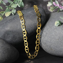 This mariner link chain comes in 14k yellow gold and has a width of 6.3 millimeters.