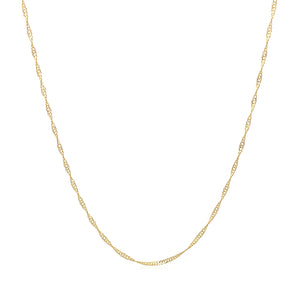 This Singapore chain comes in 14k yellow gold and has a width of 0.60 millimeters.