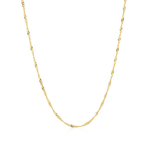 This Singapore chain comes in 14k yellow gold and has a width of 1.5 millimeters.