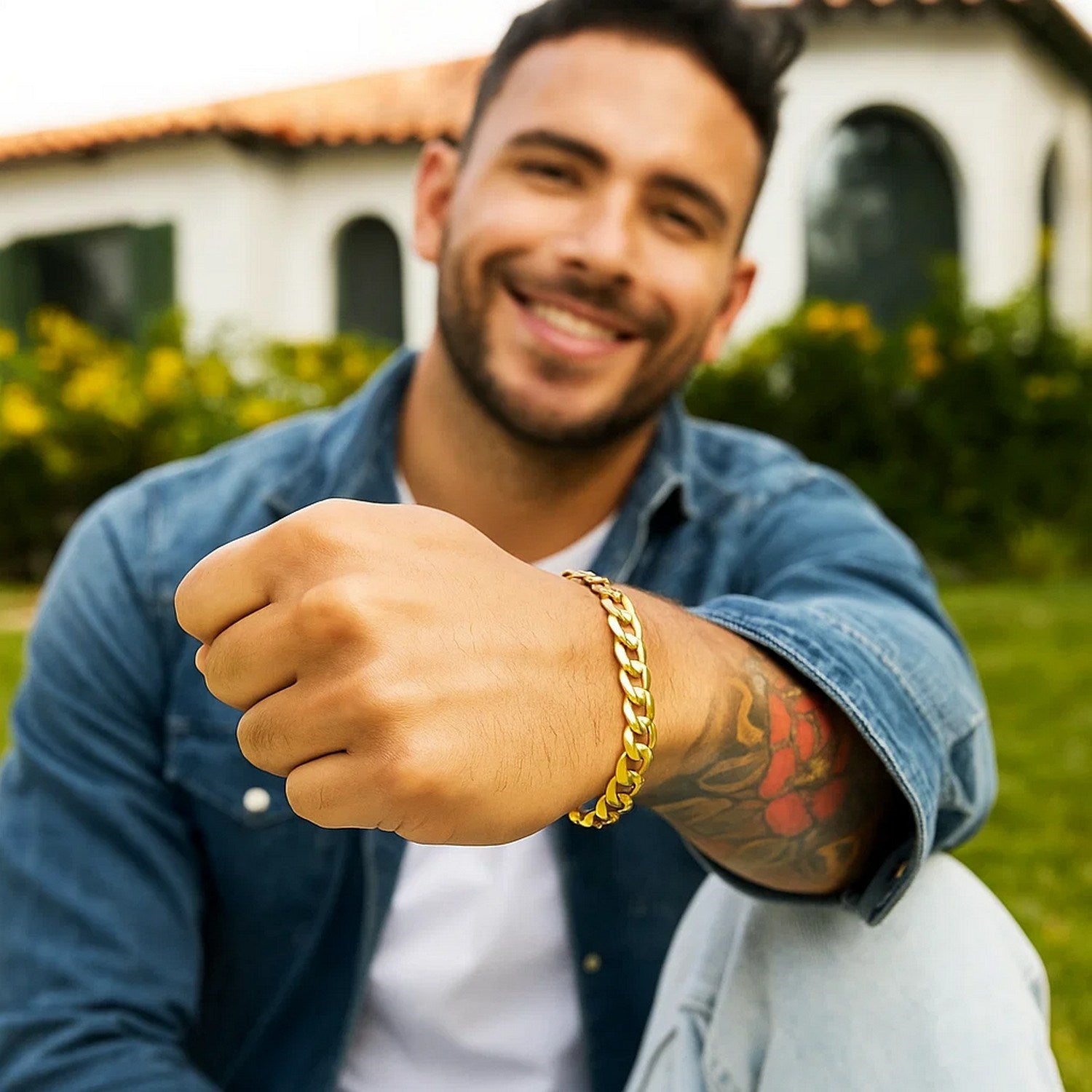 This solid curb bracelet comes in 14k yellow gold and has a width of 11.23 millimeters. Secured with a lobster clasp.