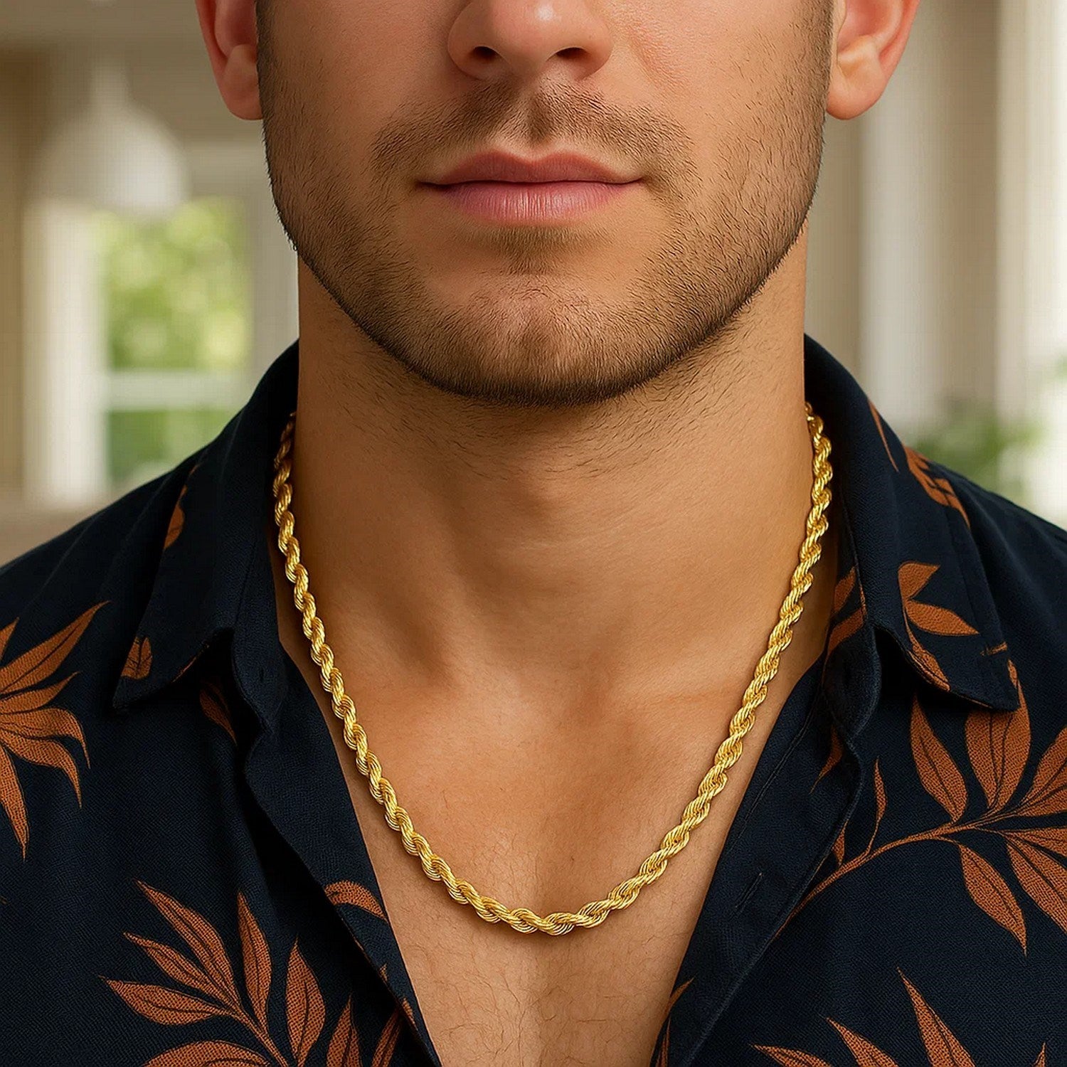 This solid diamond cut rope chain comes in 14k yellow gold and has a width of 5.0 millimeters.