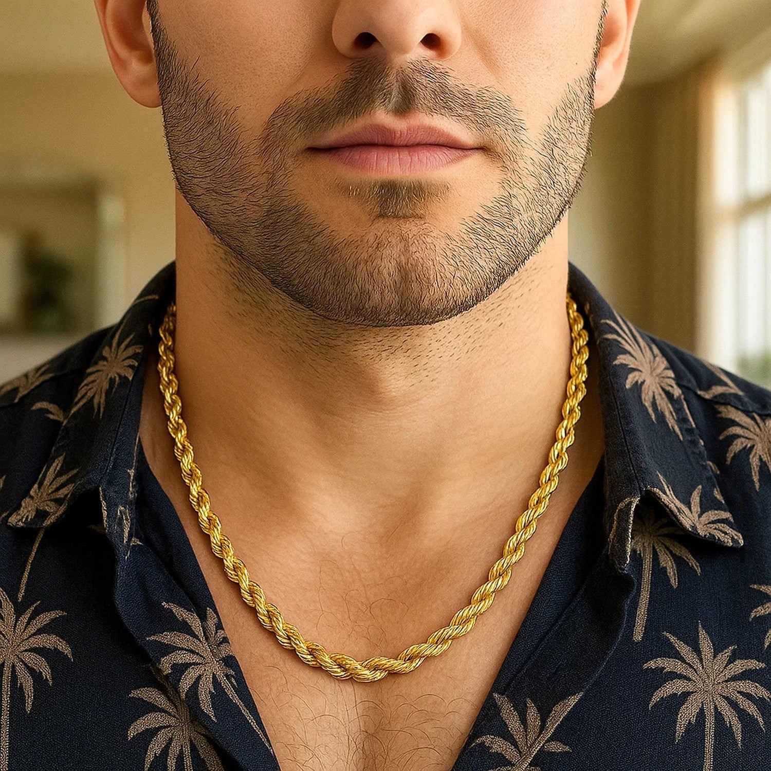 This solid diamond cut rope chain comes in 14k yellow gold and has a width of 7.0 millimeters.