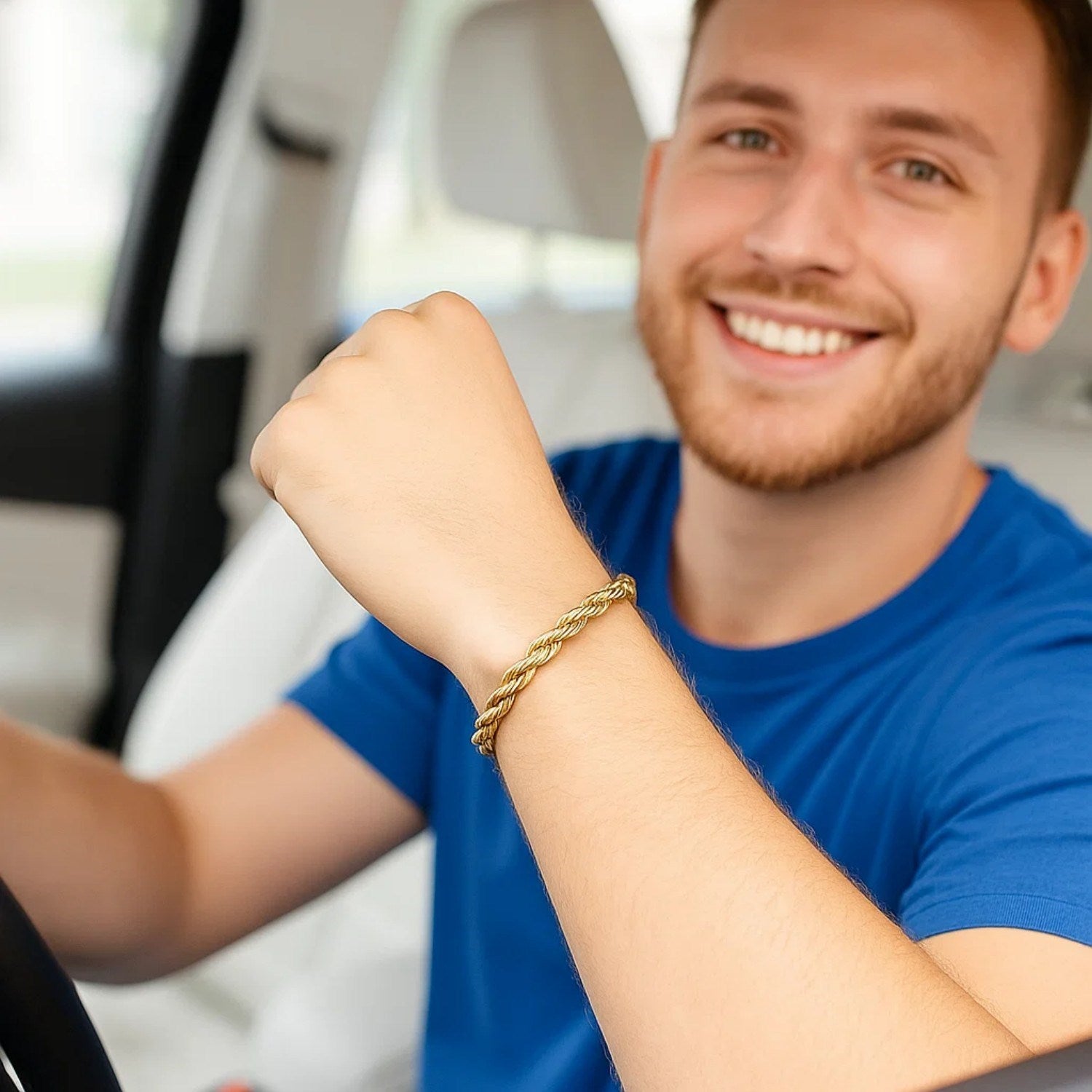 This solid diamond cut rope, bracelet chain comes in 14k yellow gold and has a width of 5.0 millimeters secured with a lobster clasp.