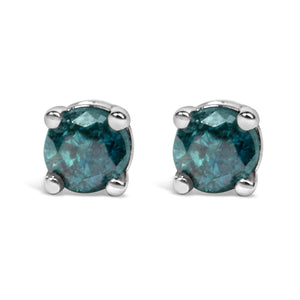 Celebrate any occasion with these classic shimmering solitaire diamond stud earrings. Fashioned in genuine .925 sterling silver, each earring showcases a sparkling color treated round cut diamond solitaire. They come in your choice of fancy blue and fancy green color. Dazzling with a bright polished shine, these post earrings secure comfortably with friction posts and butterfly backs. These classic earrings make a great gift for any special occasion! Whether worn for daytime glamour or evening sparkle, these studs are gorgeously versatile. Coordinate these earrings with your favorite diamond necklace or other diamond jewelry to create a complete elegant ensemble.