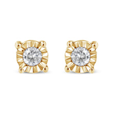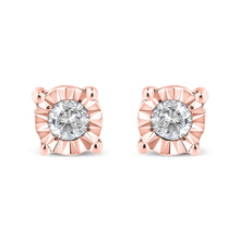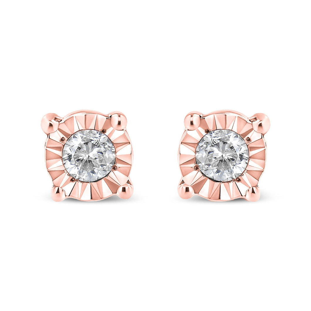 Add a shimmering touch to your wardrobe with these elegant and extravagant diamond earrings. Fashioned in the round shape, the earrings are crafted of your choice of sterling silver plated with white rhodium, or with 10K rose or yellow gold electroplating. Each of the studs captivates with miracle plated round cut diamonds, which gives the illusion of larger diamonds, making them shine like countless stars glitter in the sky.