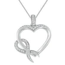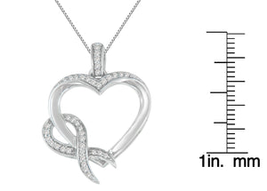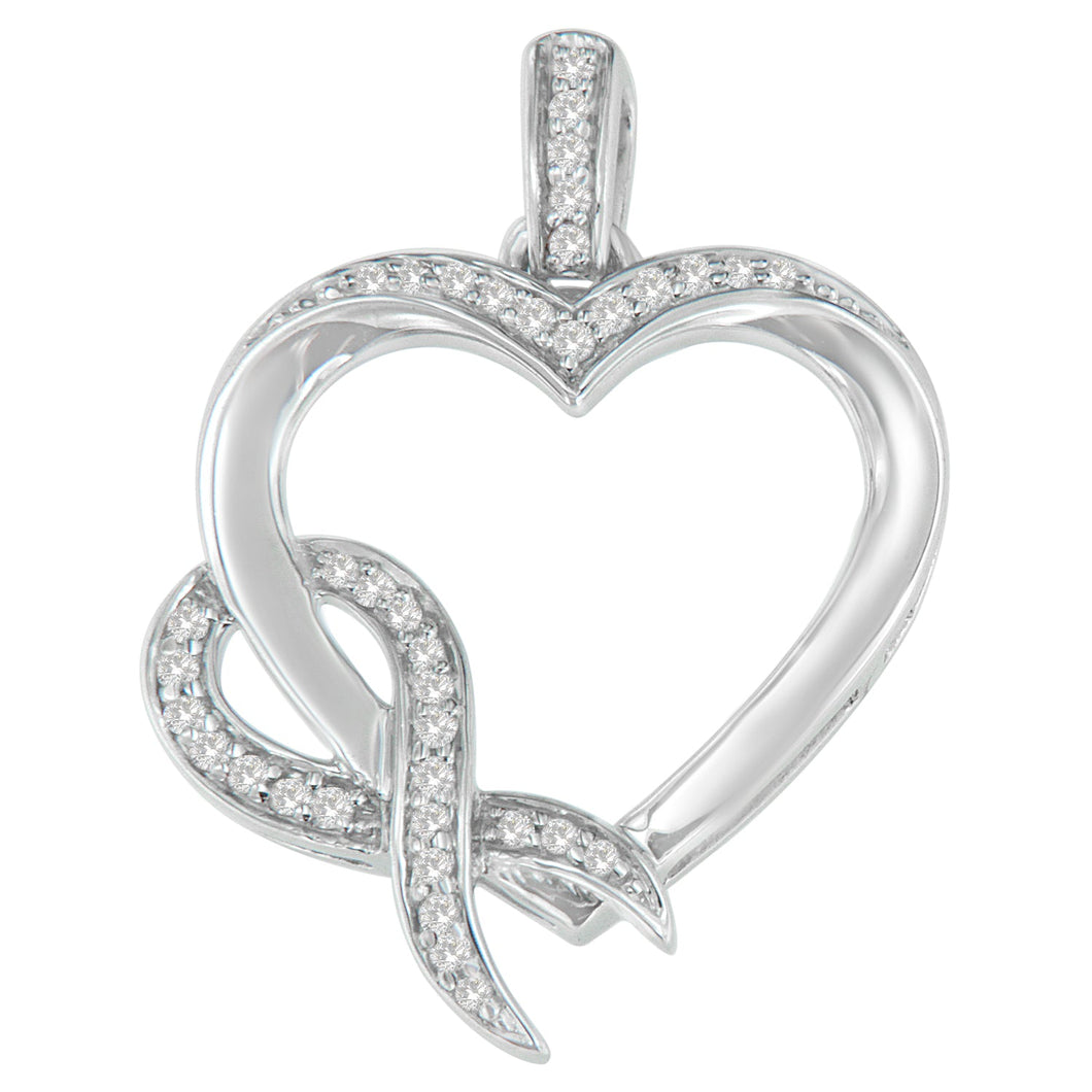 Delicately wrapped around a beautiful heart made up of round cut diamonds, is a single ribbon, which only adds to the beauty and elegance of this sterling silver pendant. Every last detail was designed to bring a smile to the special woman who receives it.