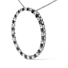 Expertly crafted from .925 sterling silver, this pendant necklace is a masterclass in elegance and contrast. Its circle pendant features a mesmerizing arrangement of alternating round-cut black and white diamonds, totaling 2.0 carats. The rhodium plating not only enhances its lustrous shine but also ensures durability. Suspended from an 18-inch box chain with a secure spring ring clasp, this piece exudes sophistication. The natural, earth-mined diamonds are treated to perfect the rich hue of the black diamonds, adding depth and intensity that captivate the eye. Ideal for those who appreciate luxury and intricate craftsmanship, this necklace promises to elevate any ensemble with its distinctive allure.