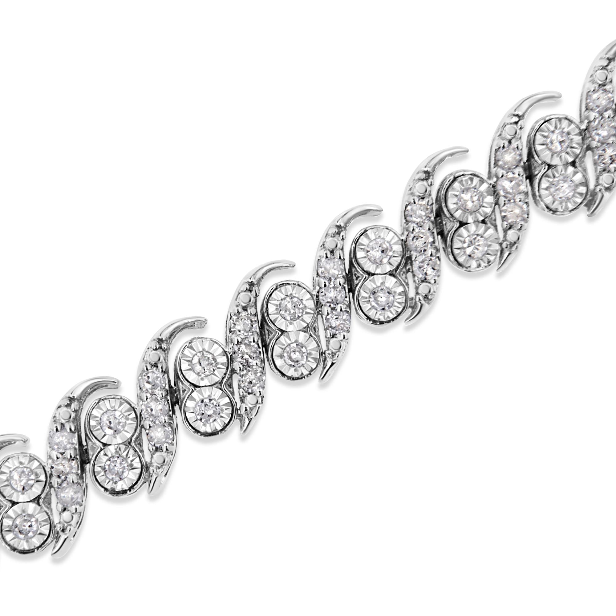 .925 Sterling Silver 2.0 Cttw Round-Cut Diamond "S" Link Bracelet (I-J Color, I3 Clarity) - 7.25"
