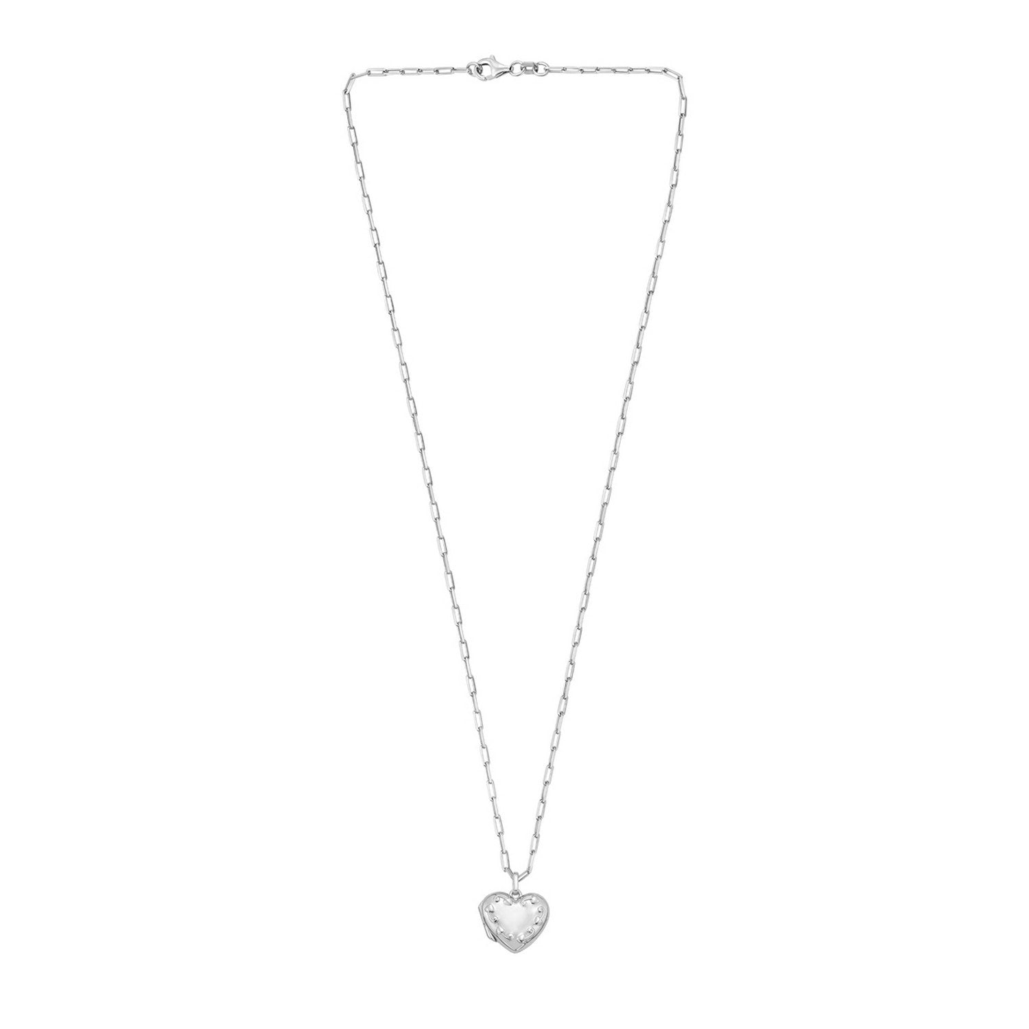 Timeless and sentimental, this Sterling Silver Rhodium Plated Heart Locket Necklace brings classic charm to any jewelry collection. The polished heart-shaped locket opens to hold a cherished photo or small keepsake, keeping what matters most close to your heart. Finished with rhodium plating for added durability and a bright, tarnish-resistant shine, it’s perfect for everyday wear or gifting. Simple, beautiful, and meaningful, this necklace adds a touch of heartfelt elegance to any look.