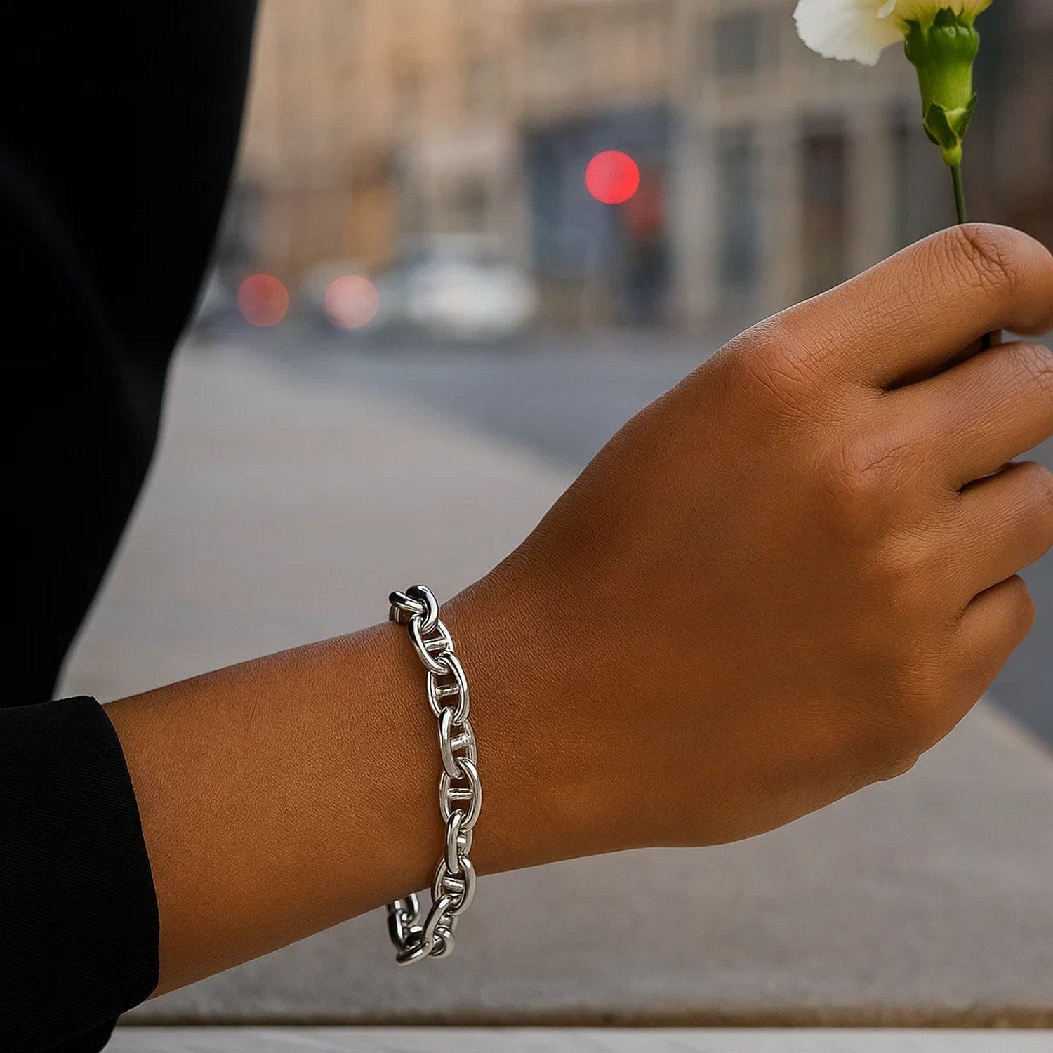 Sleek and substantial, this Sterling Silver Rhodium Plated Puffed Mariner Bracelet (5.90 mm) offers a bold yet refined take on a classic nautical design. The puffed mariner links create smooth dimension and a striking, polished look, while the rhodium plating enhances durability and provides a bright, tarnish-resistant shine. Perfect for everyday wear or adding a standout touch to any outfit, this bracelet is a timeless and versatile addition to any jewelry collection.