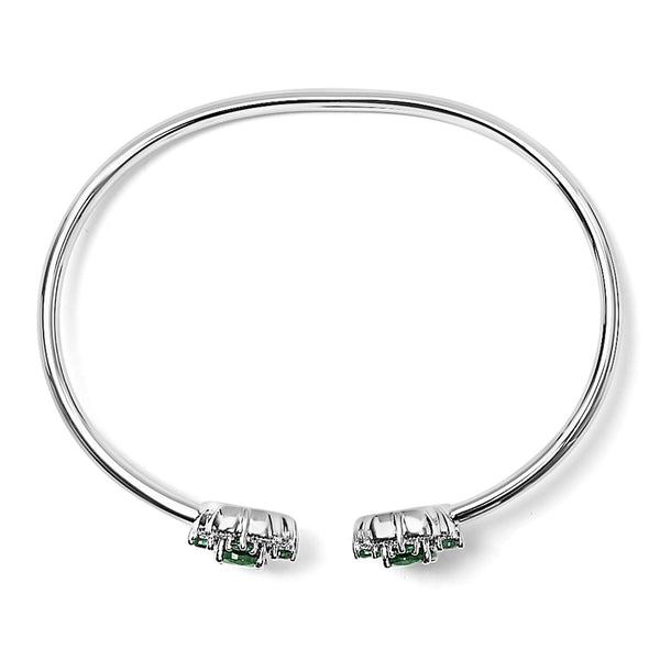 Sterling Silver White Topaz and Green Emerald Floral Bangle Bracelet 6.5 Inch
